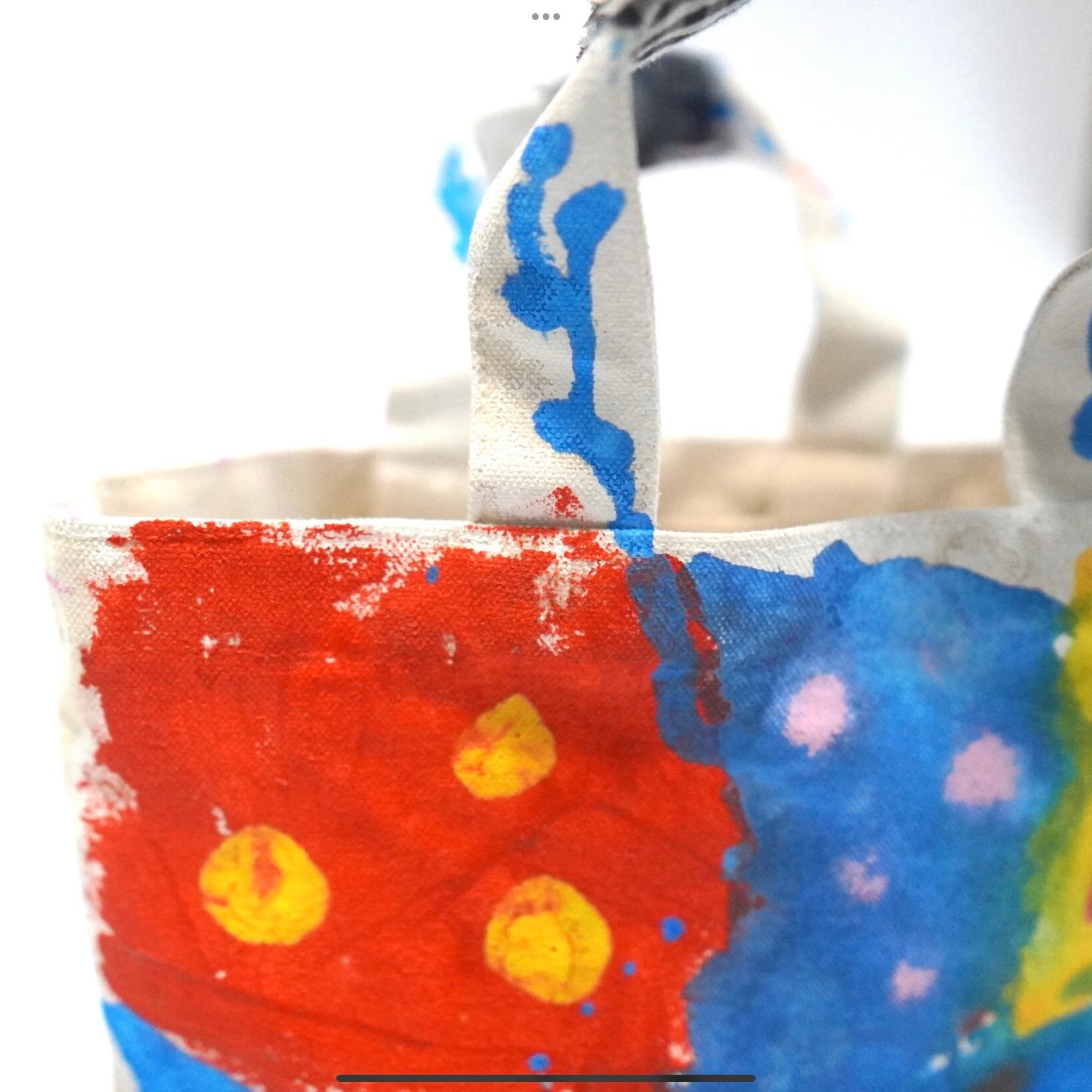 カラフルなペイントがアクセント、一点物の手描きトートバッグ mineシリーズ 。