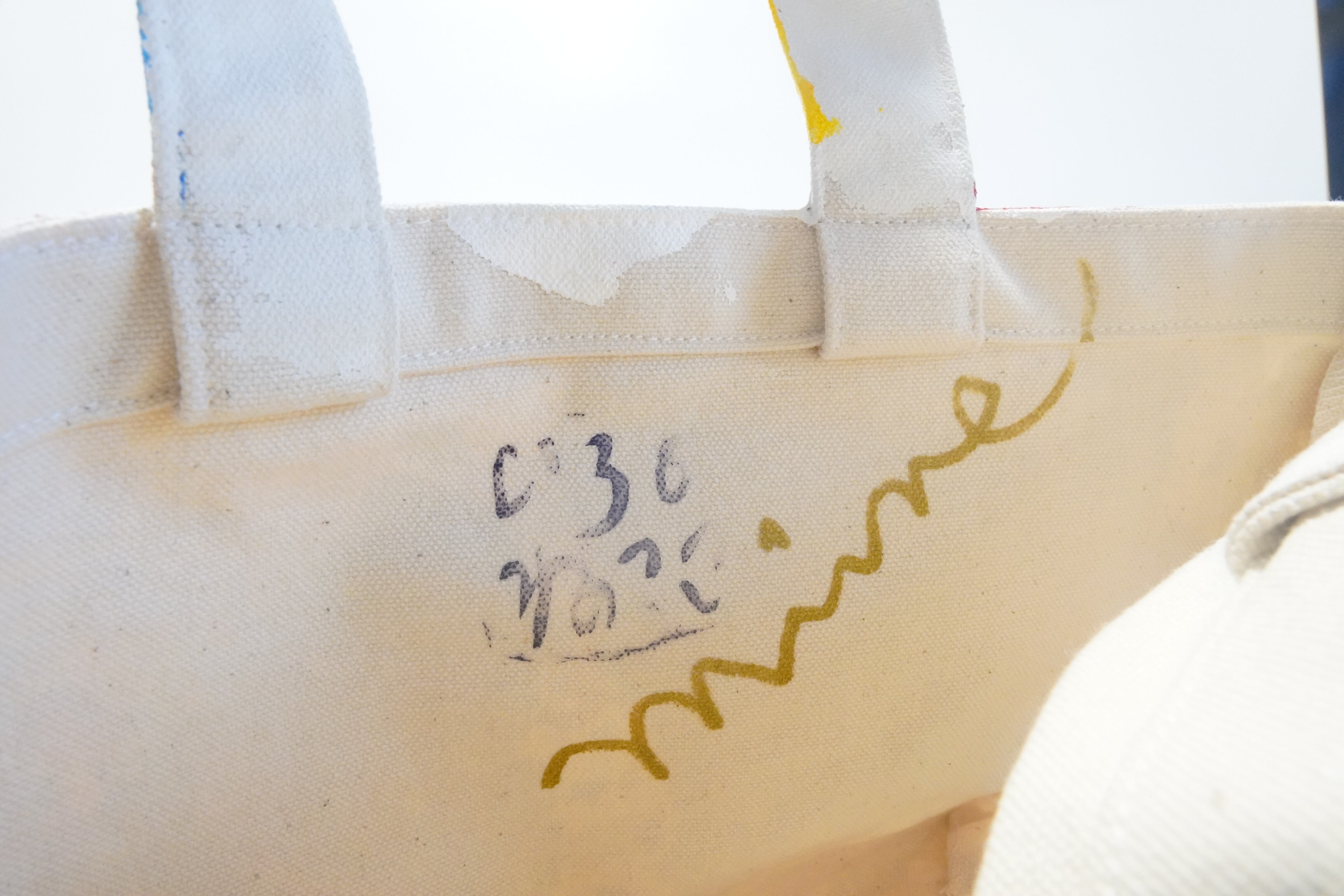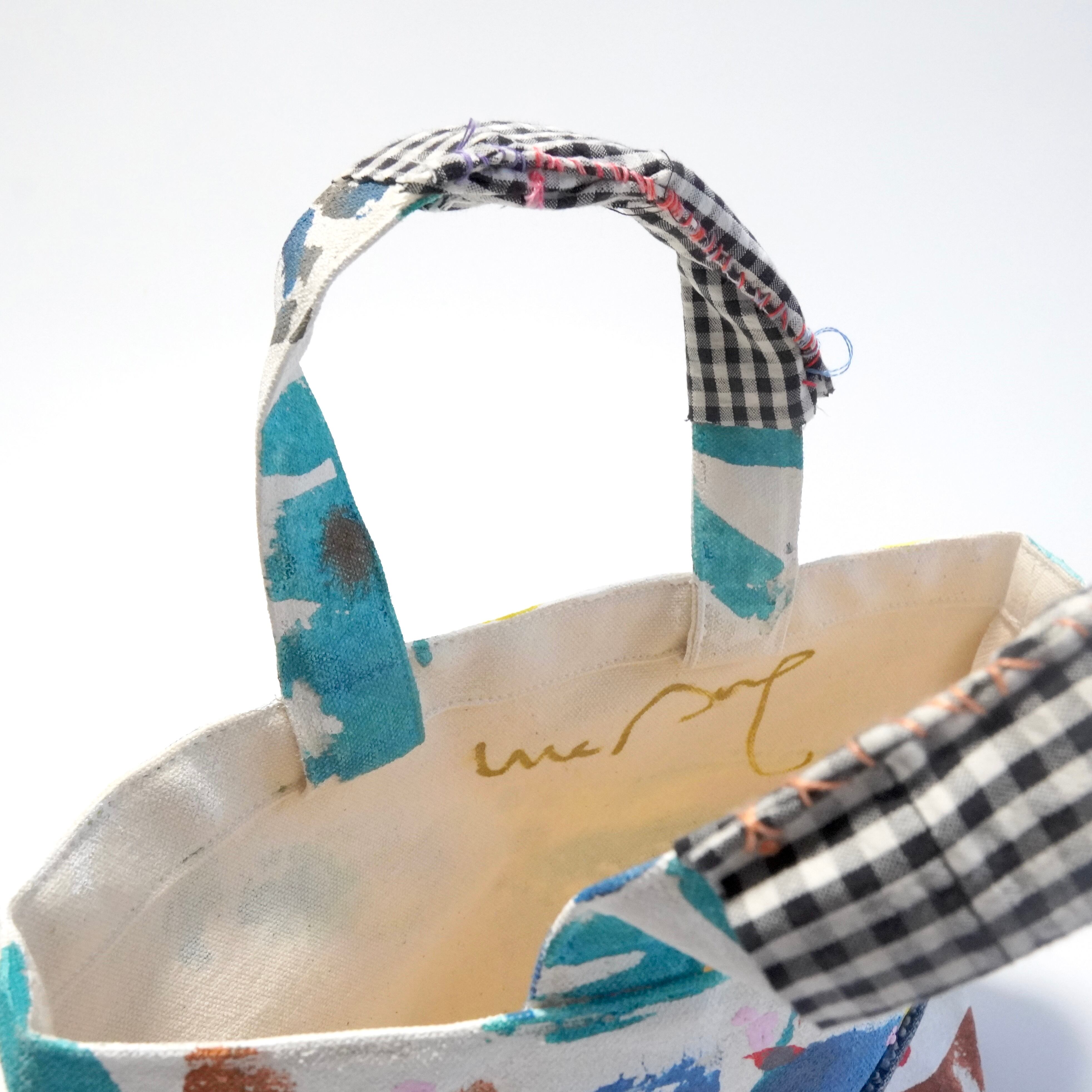 カラフルなペイントがアクセント、一点物の手描きトートバッグ mineシリーズ 。