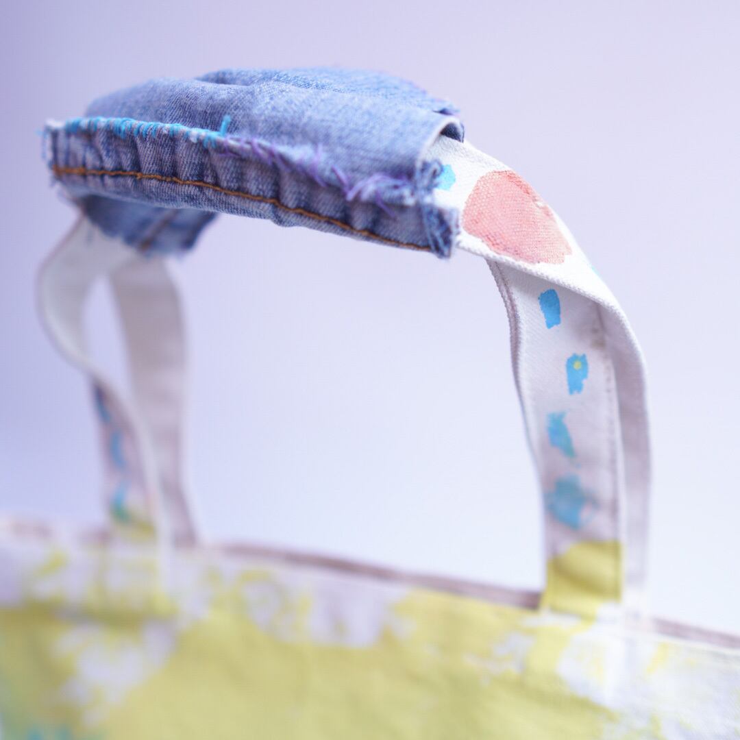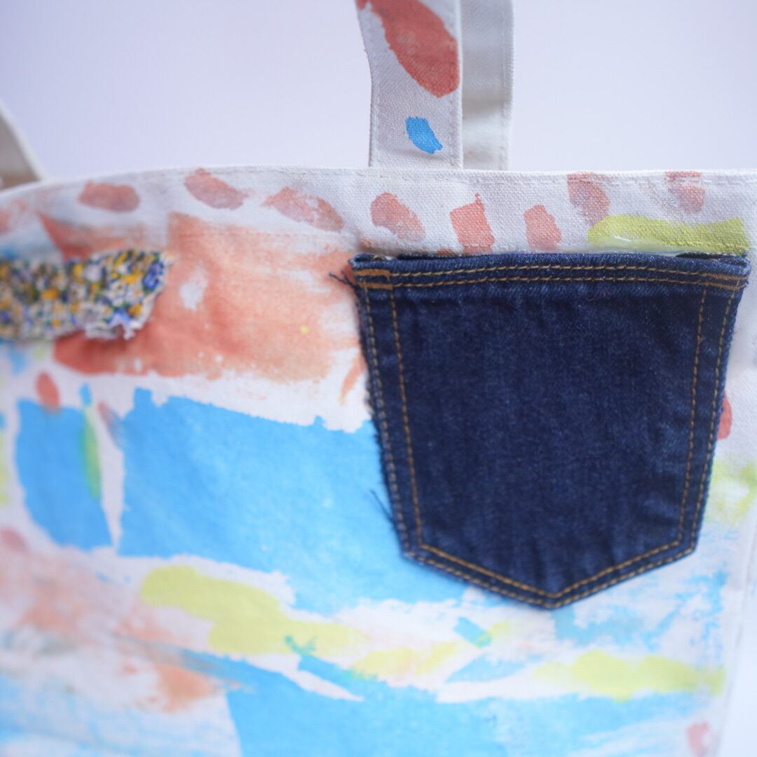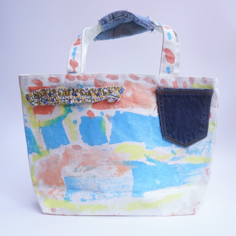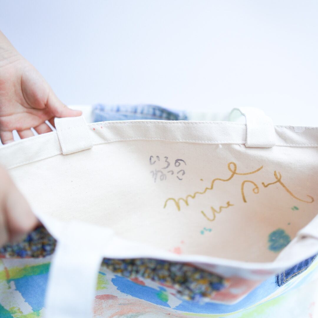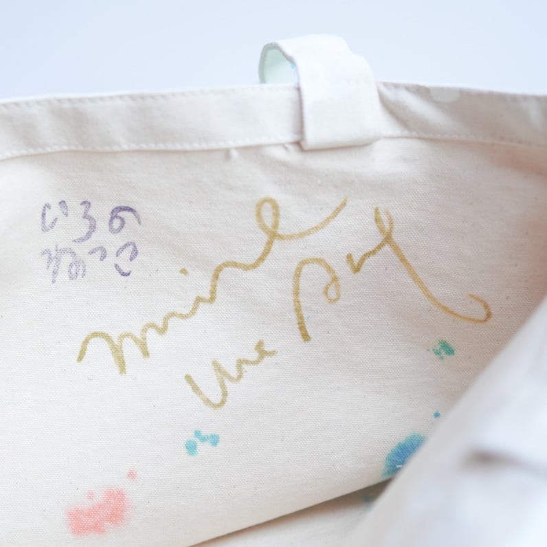 カラフルなペイントがアクセント、一点物の手描きトートバッグ mineシリーズ 。